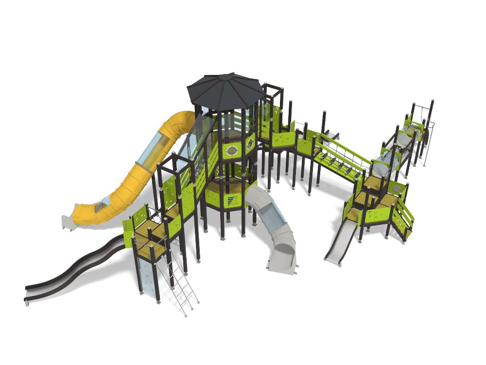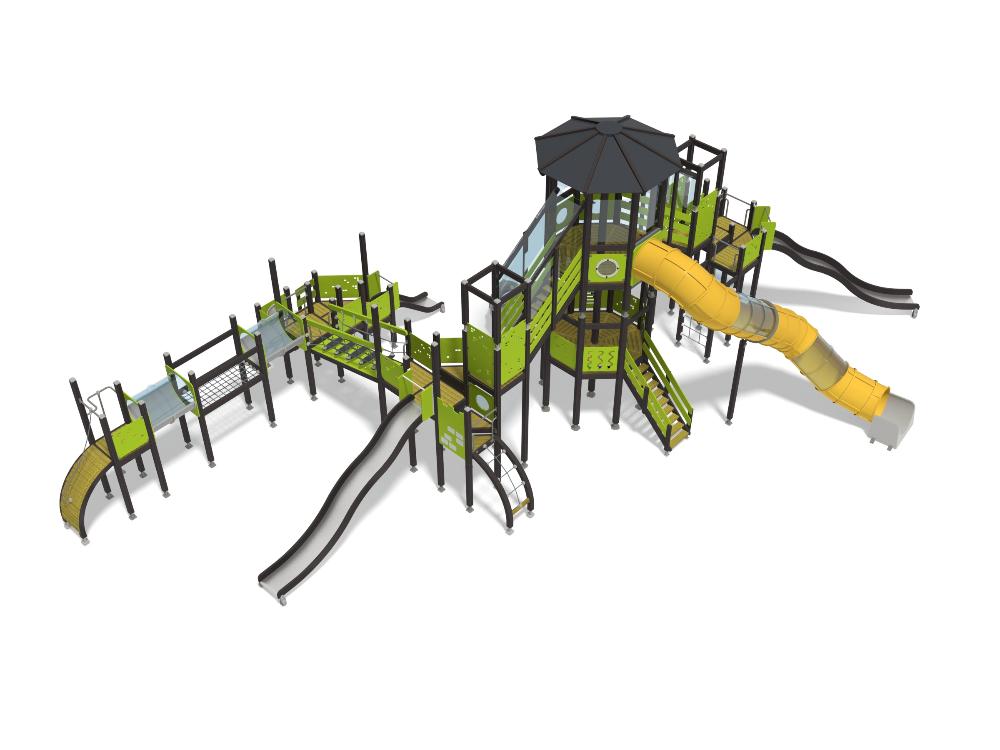Wooden sides and steel surface, Plastic tube slide