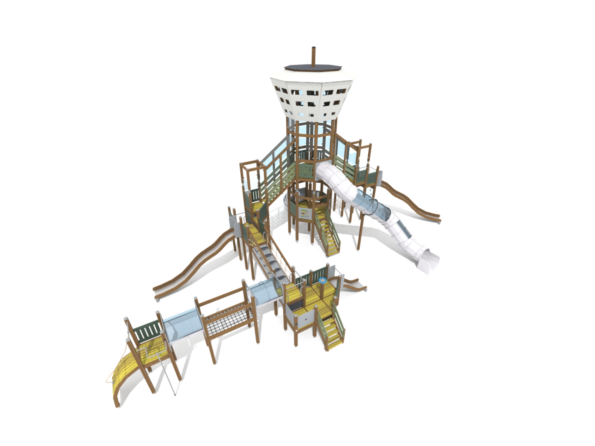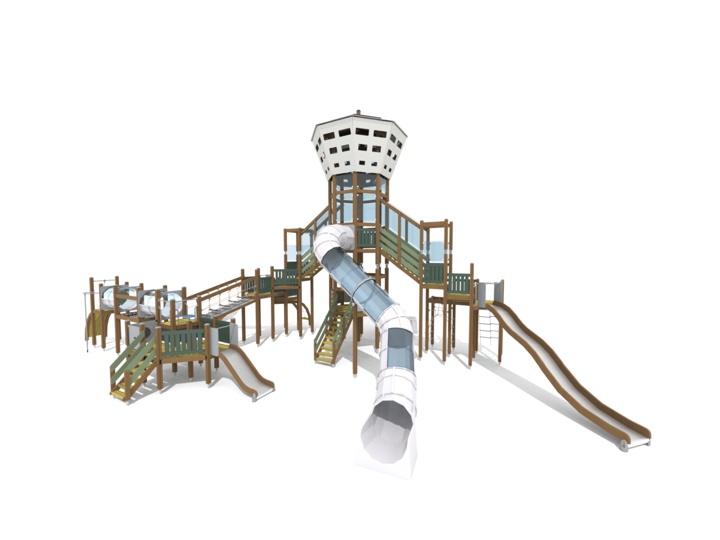 Wooden sides and steel surface, Plastic tube slide