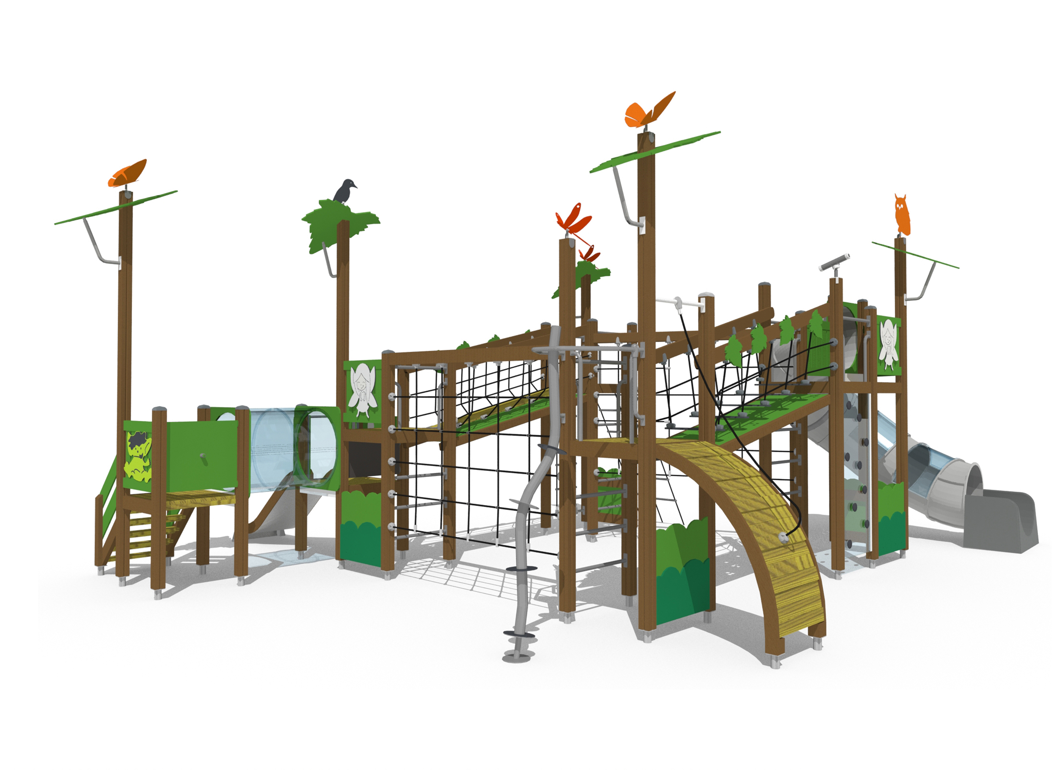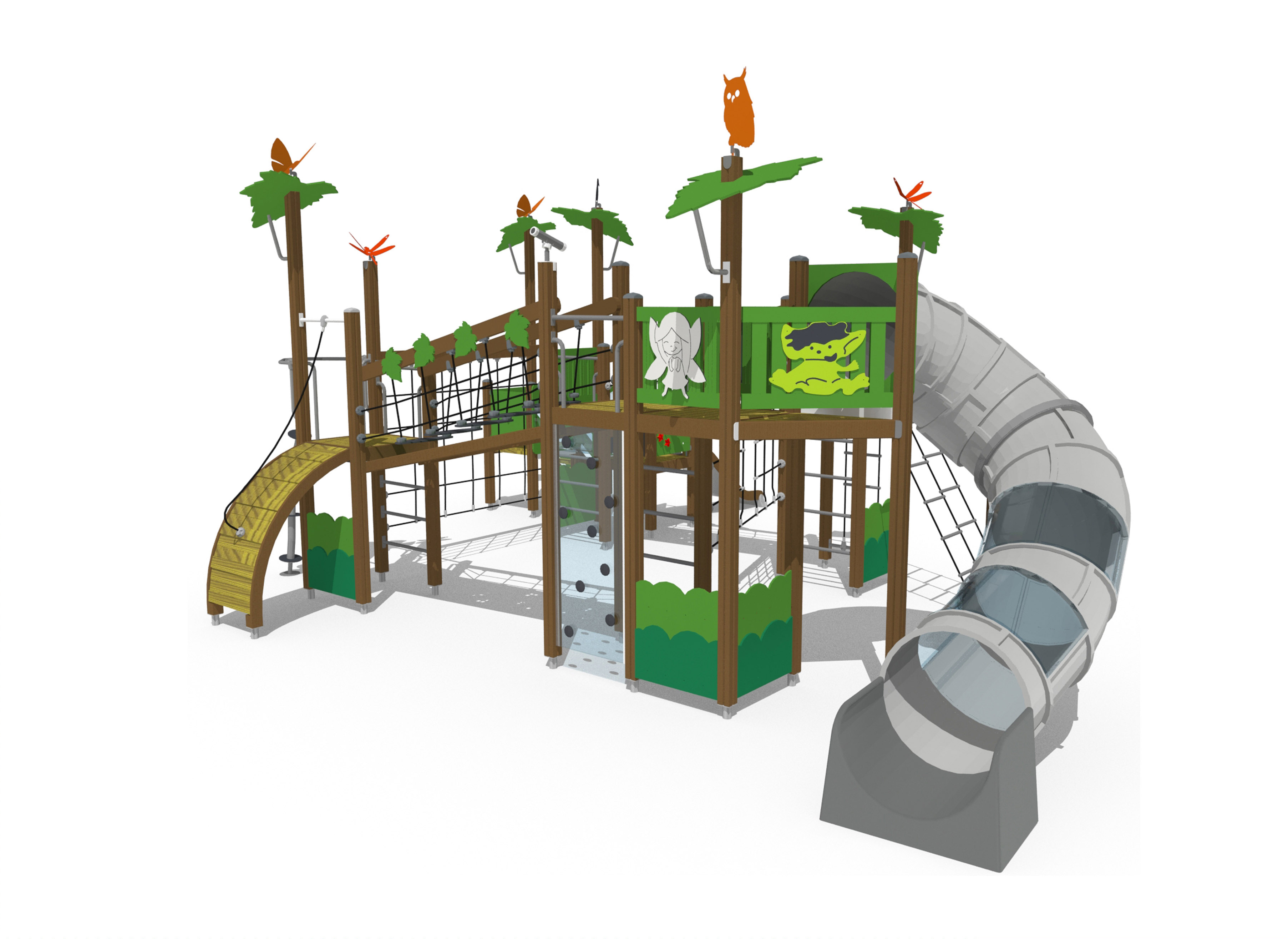 Wooden sides and steel surface, Plastic tube slide