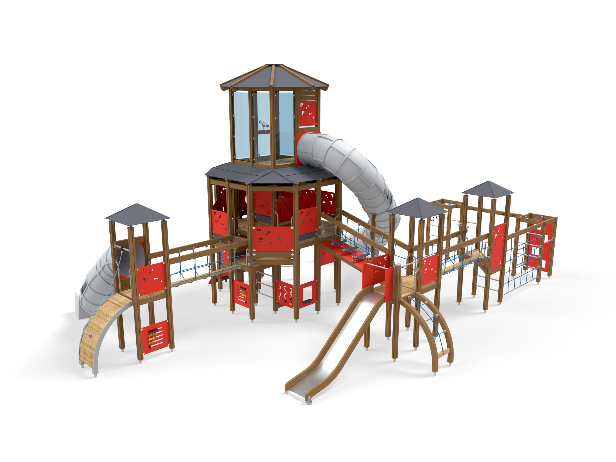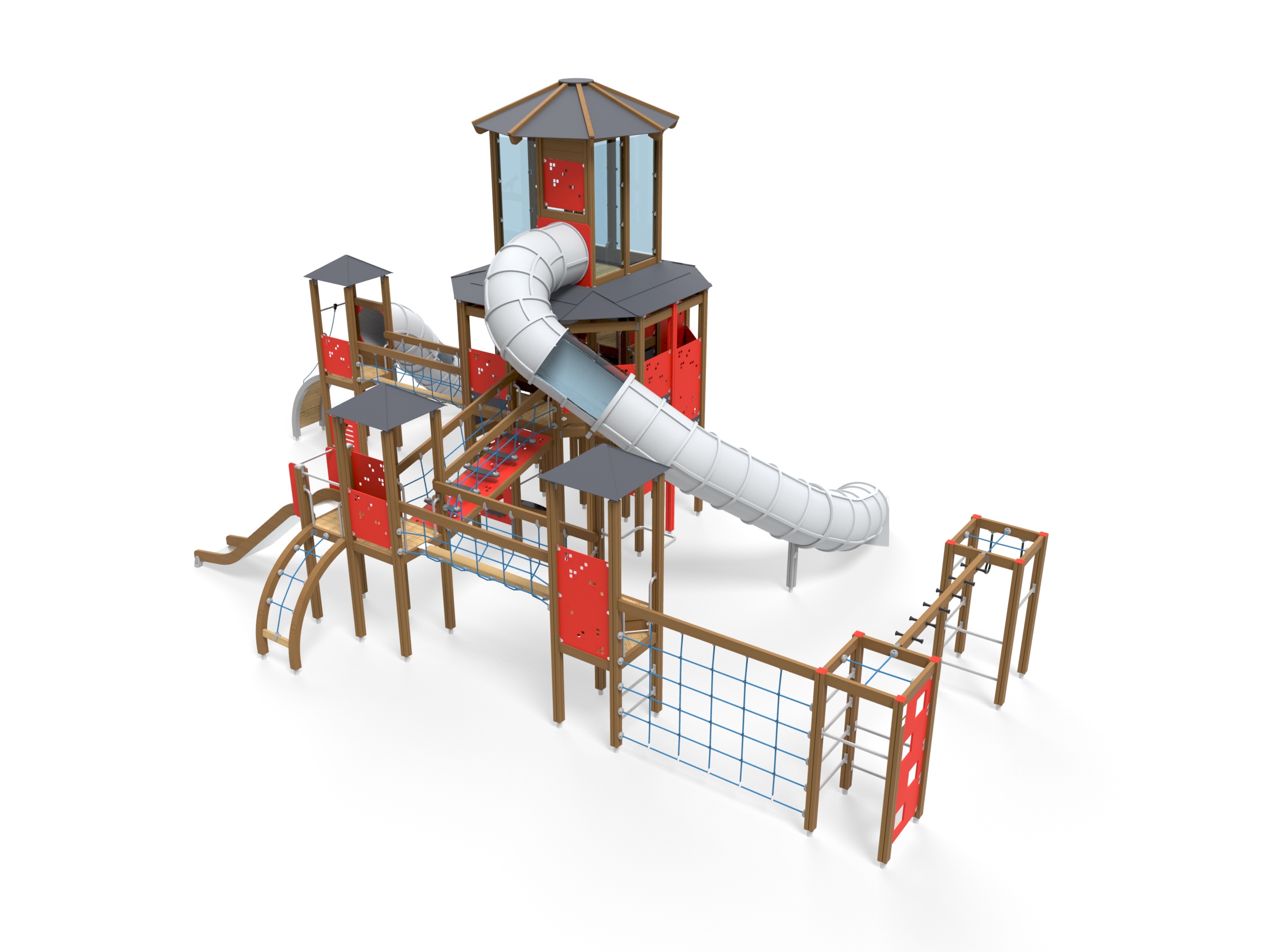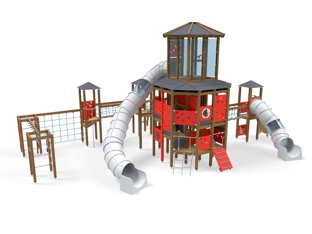Wooden sides and steel surface, Plastic tube slide