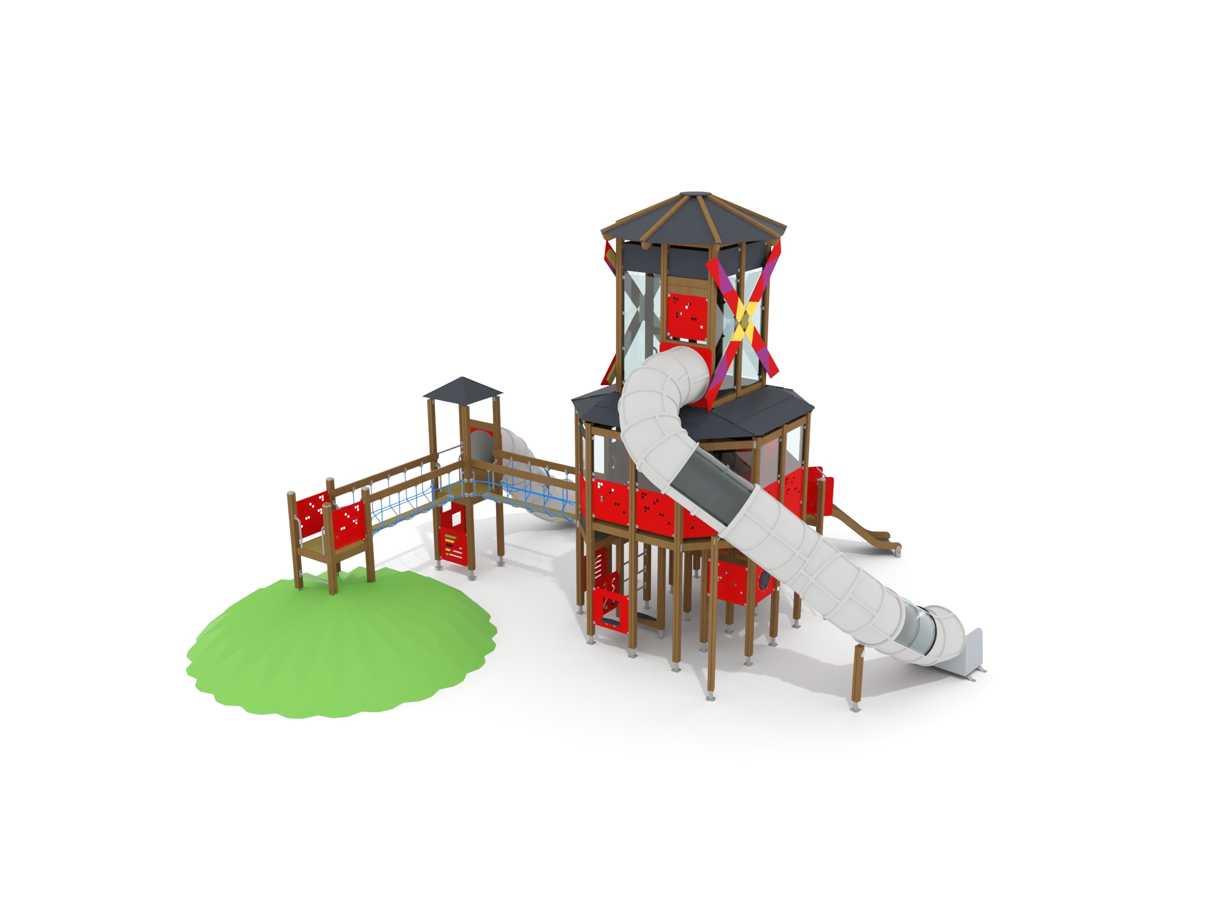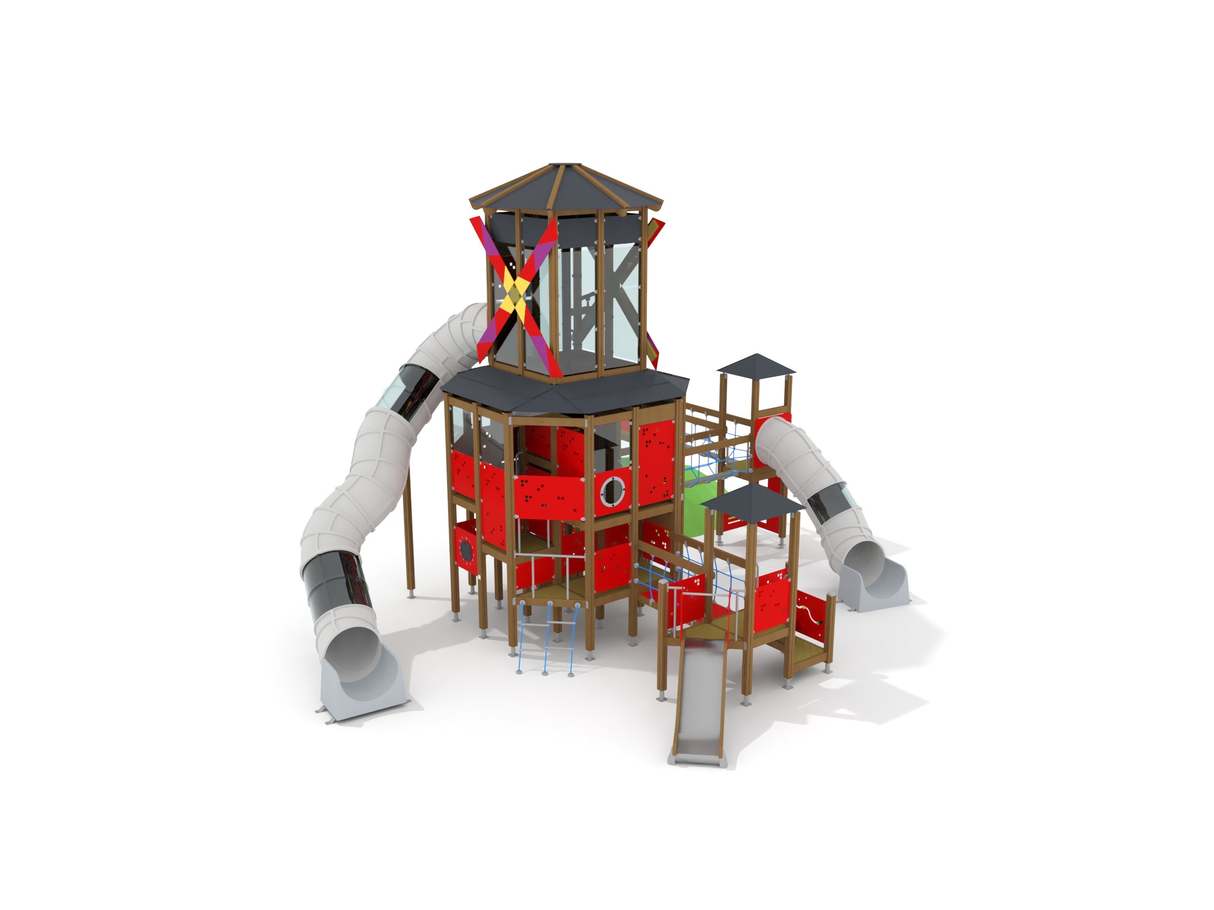 Wooden sides and steel surface, Plastic tube slide